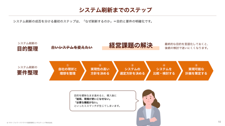 改善点を見極めてはじめて、経費精算システムに必要な機能を正確に絞り込めます。