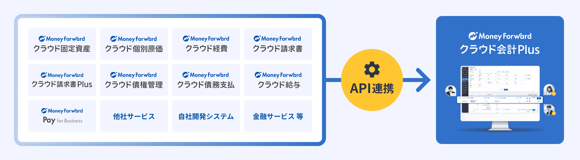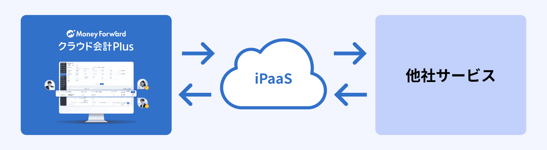 マネーフォワードクラウドや他社サービス、iPaasなどとAPI連携に対応しているため、