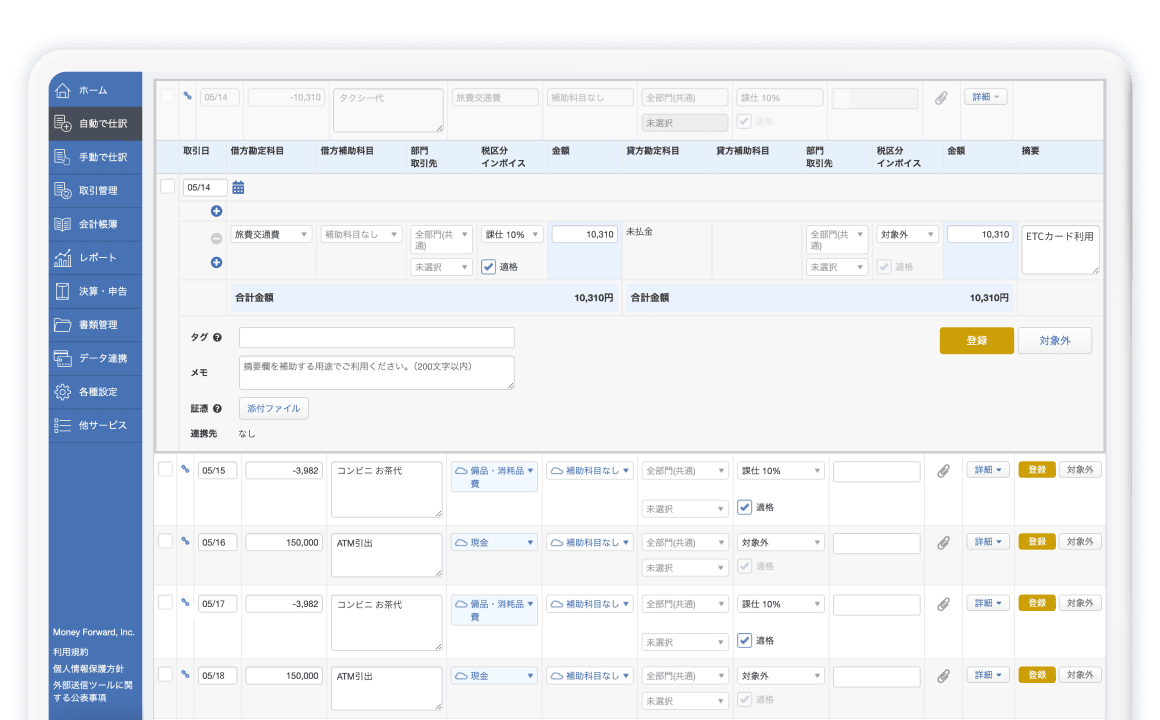 会計ソフト「マネーフォワード クラウド会計」への明細自動連携