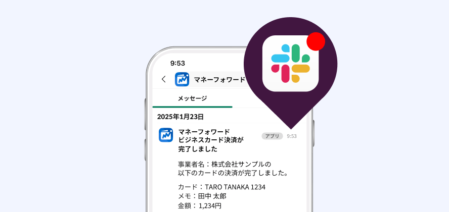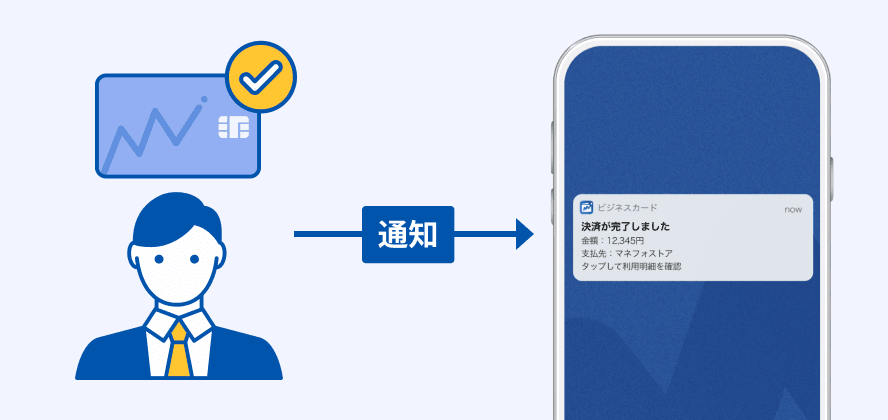 決済状況は「メール・スマホアプリのプッシュ通知・Slack」にてリアルタイムで通知されます。いつ誰がどこでいくら決済したのかをすぐに確認することができ、安心して利用できます。