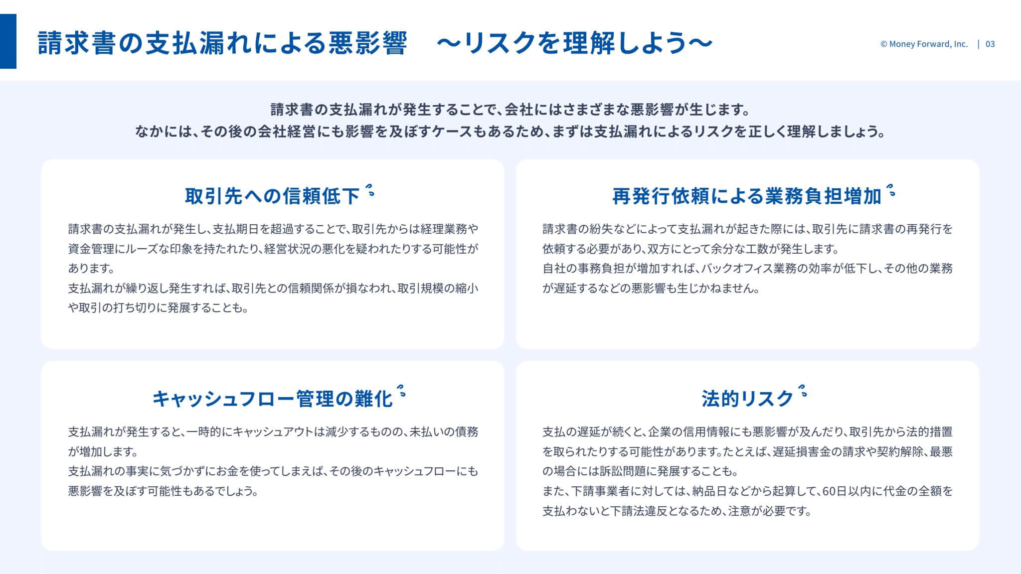 請求書の支払漏れによる影響や