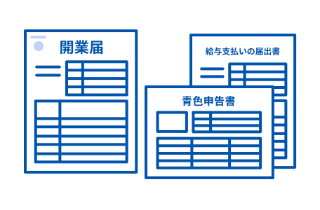 開業書類だけでなく青色申告や給与支払いの届出書にも対応