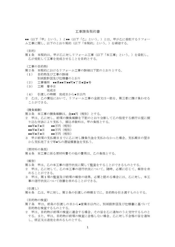 リフォーム工事請負契約書のテンプレートは、こちらからダウンロードできます。