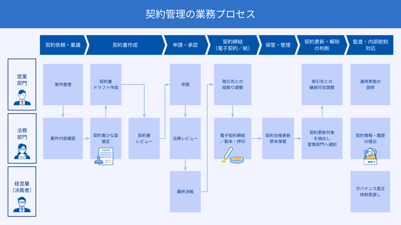 成功企業は、契約管理の一連の業務プロセスを整理したうえで、デジタル化を進めています。
