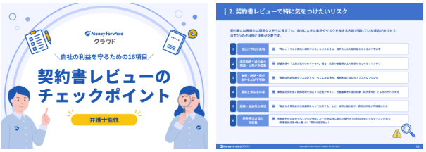 契約書レビューでチェックするべきポイントをまとめた資料を無料で提供しています。