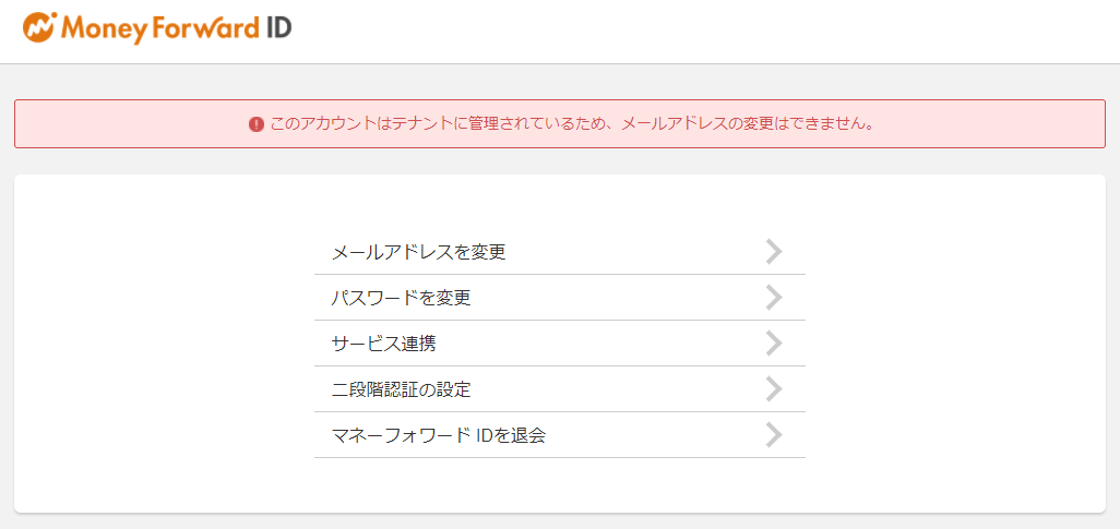 対象ユーザーの退職時の対応を考慮して、対象のユーザーによる会社アカウントで「マネーフォワード ME」などの個人向けサービスの利用を制限できます。