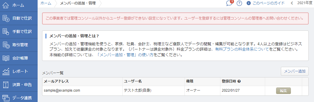 「管理コンソール」以外のサービスでユーザーを新規登録できないように制限できます。