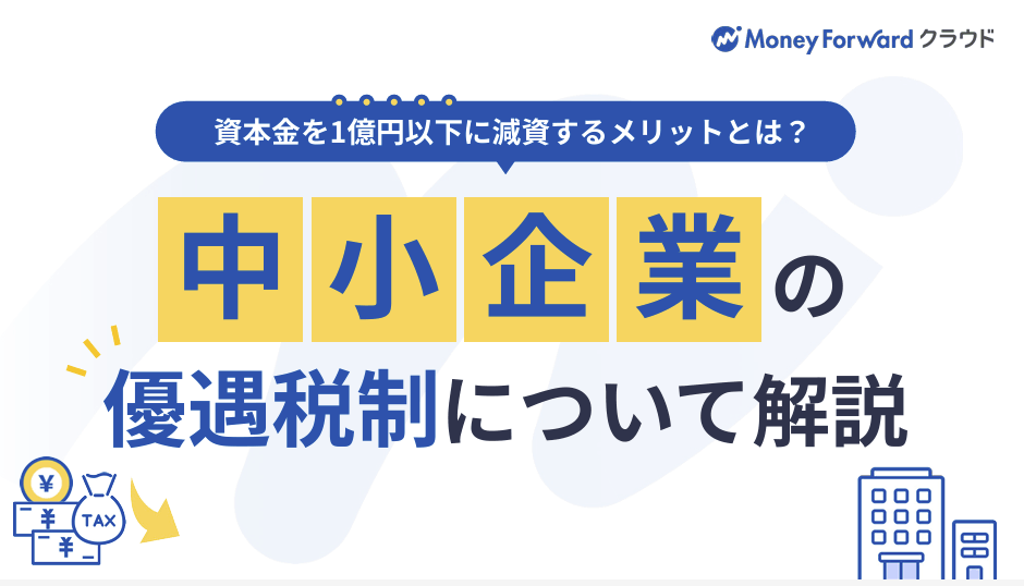 1億円以下に減資することで法人税などがどの程度節税できるのか、また、そもそも中小企業とは何なのか、さらに減資することで、どのような税務上の特例を受けられるのかまとめました。中小企業の優遇税制が対象外になる会社についても解説するので、ぜひご覧ください。