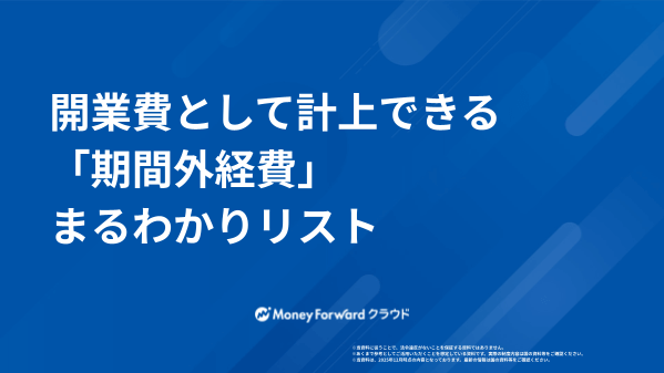 会計ソフトを導入済みであれば、開業日を迎えた時点で「開業費」として仕訳を起票しましょう。これにより、開業準備中の支出が繰延資産として帳簿上で明確に管理され、任意のタイミングで費用化(償却)できるようになります。