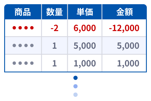 卸売・製造業の商習慣である、返品や値引きによって発生する「マイナスの取引(通称:赤伝票)」も登録できます。基幹システムなどから出力される返品・値引きデータ(赤伝票)を含む請求データを、そのままマネーフォワード 掛け払いに連携するだけで、請求処理を完結させることができます。
