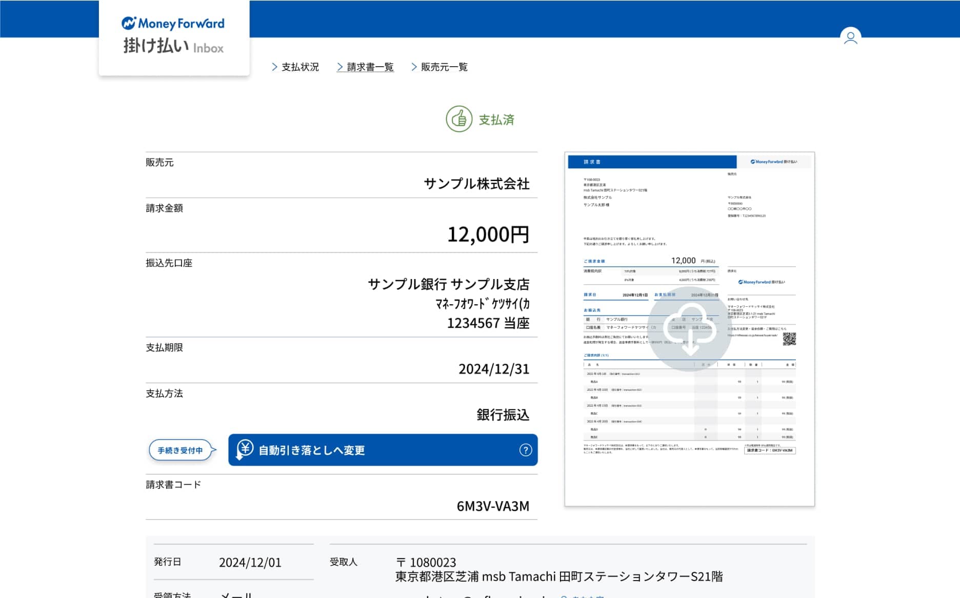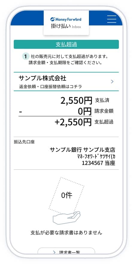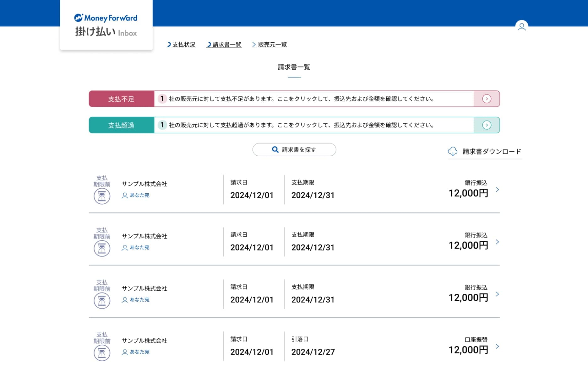 過去の請求書のすべてを管理できるので取引先ごとの支払状況の把握や、なくした請求書を再度ダウンロードできます。