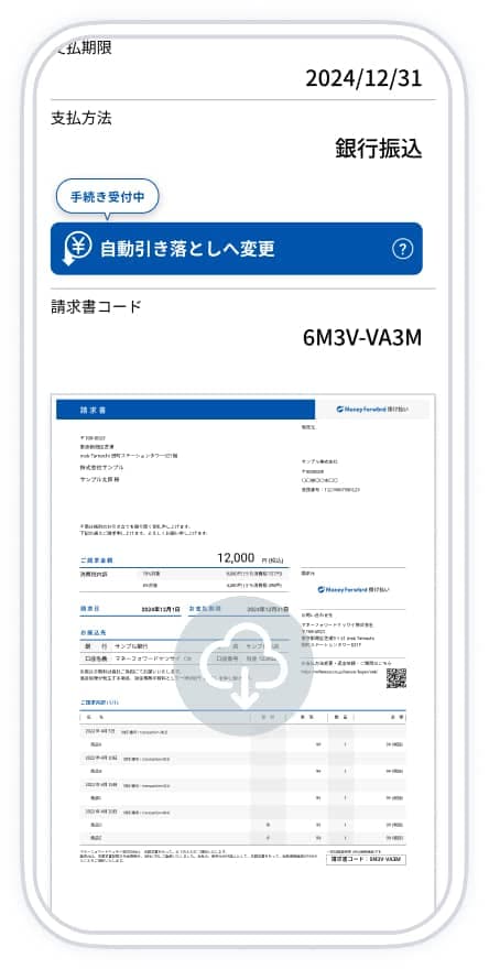 マネーフォワードケッサイ株式会社が請求金額を自動的に引き落とすため、誤入金や、支払い忘れなどが発生しません。