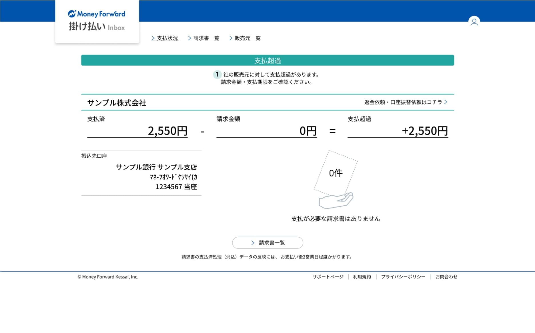 請求状況が確認できるので支払期限と請求金額の把握がすぐにできます。