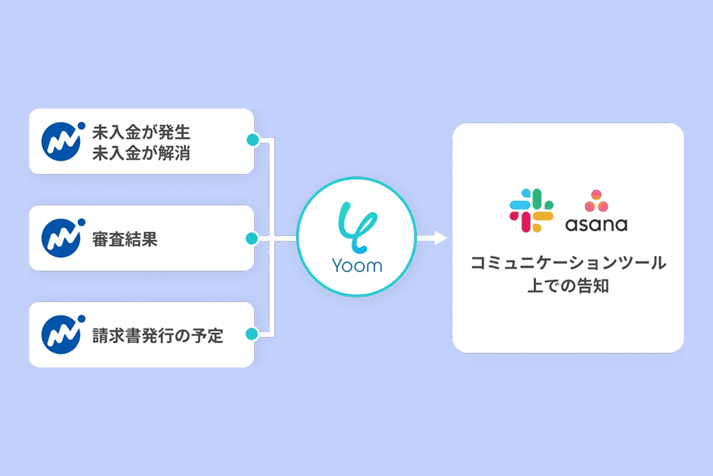 ステータスの変更をSlackなどですぐに確認できます。マネーフォワード 掛け払い上で重要な事象が発生した場合に、貴社のコミュニケーションツールに通知します。