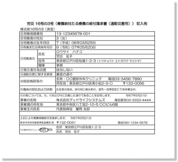 通勤災害時は様式第16号の3を正確に記入しましょう