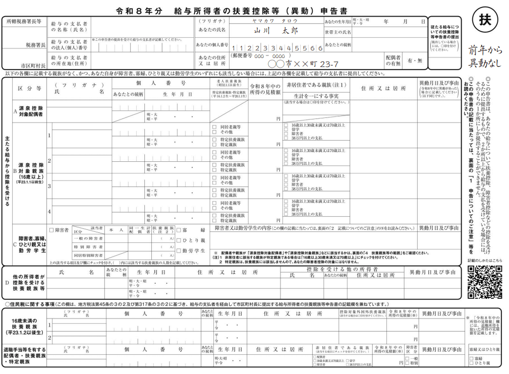 引用:A2-1 給与所得者の扶養控除等の(異動)申告|国税庁、「令和8年分給与所得者の扶養控除等(異動)申告書」