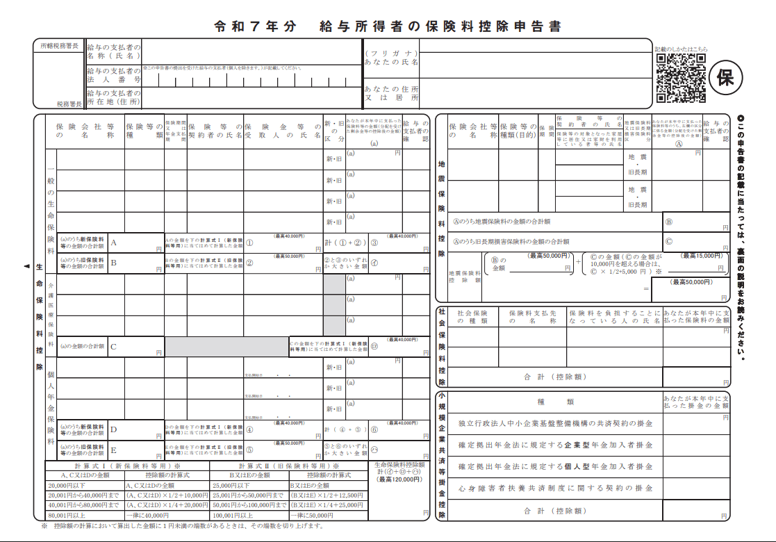 引用:A2-3 給与所得者の保険料控除の申告|国税庁、「令和7年分 給与所得者の保険料控除申告書」