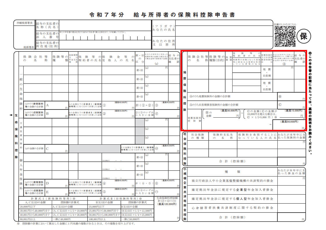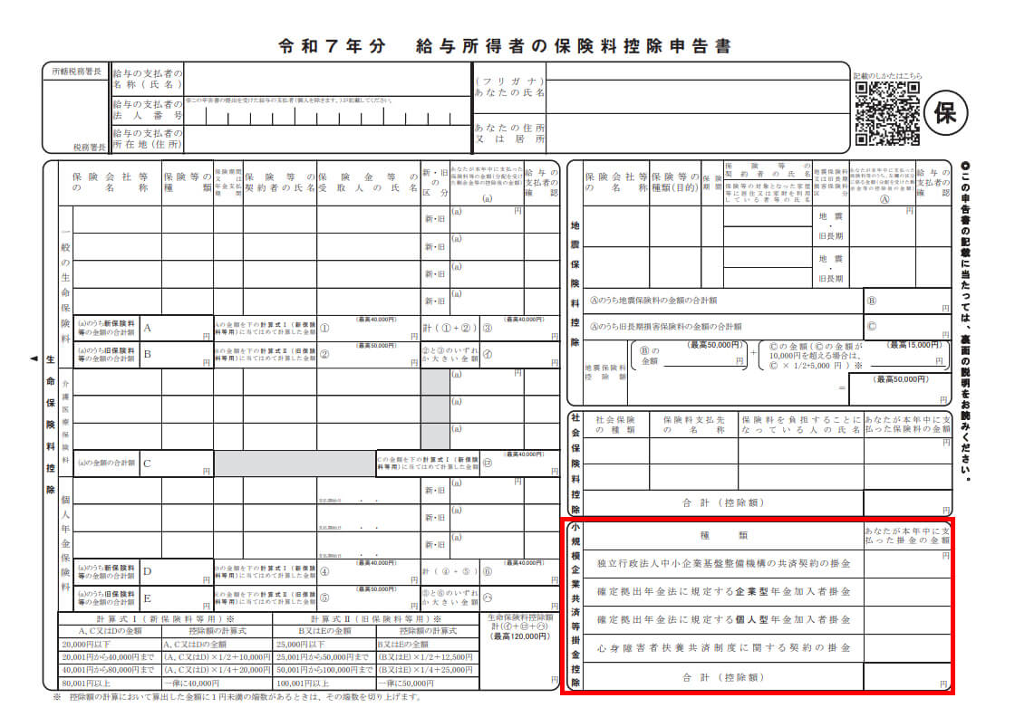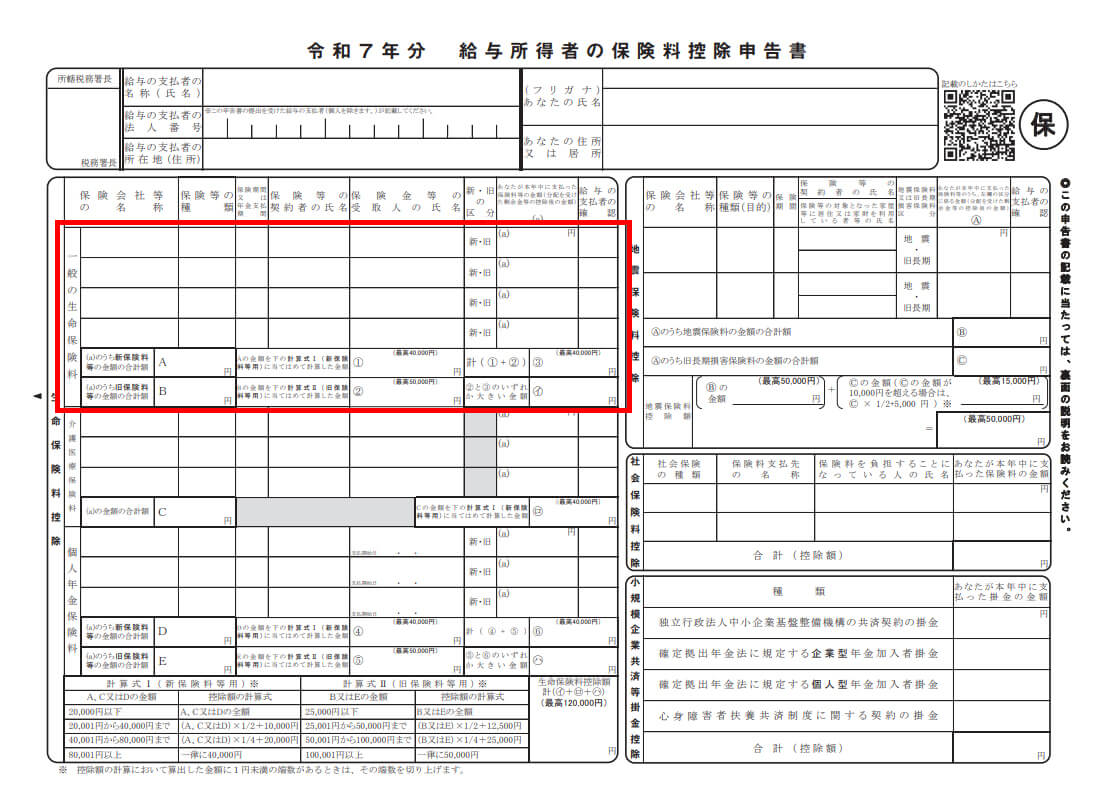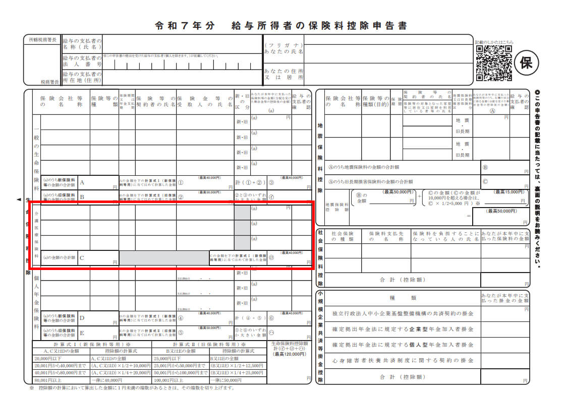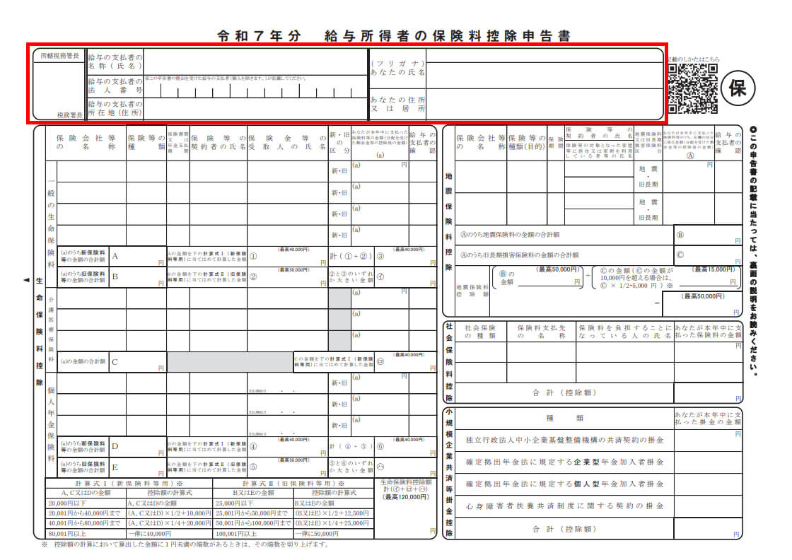 引用:A2-3 給与所得者の保険料控除の申告|国税庁、「令和7年分給与所得者の保険料控除申告書」