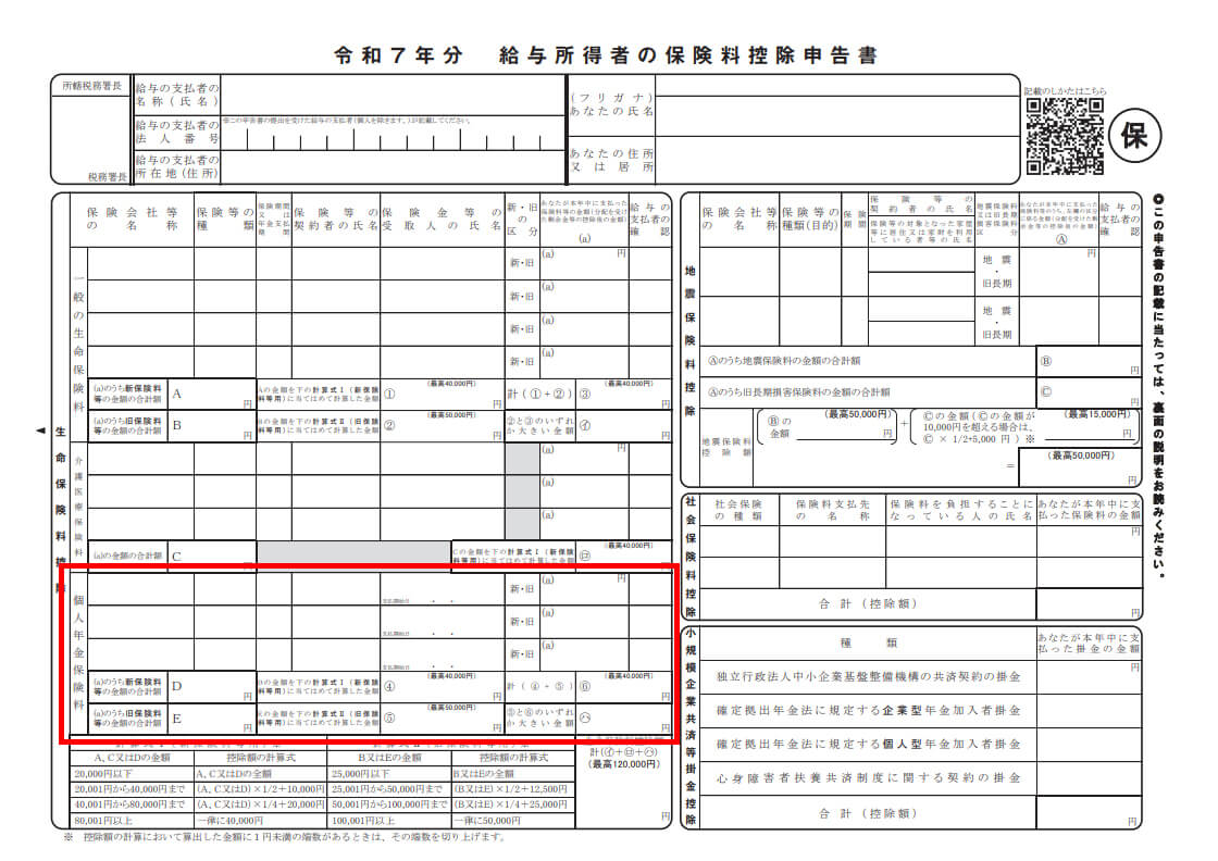 出典:A2-3 給与所得者の保険料控除の申告|国税庁、「令和7年分給与所得者の保険料控除申告書」を加工して作成