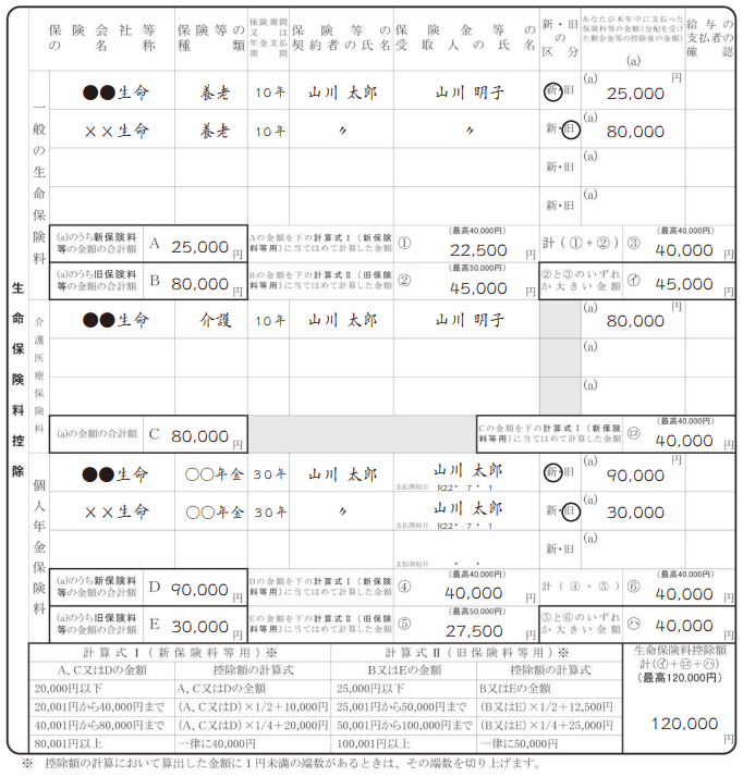 それぞれの保険料の控除額の上限は4万円となりますので、合計して最高12万円まで控除を受けることができます。