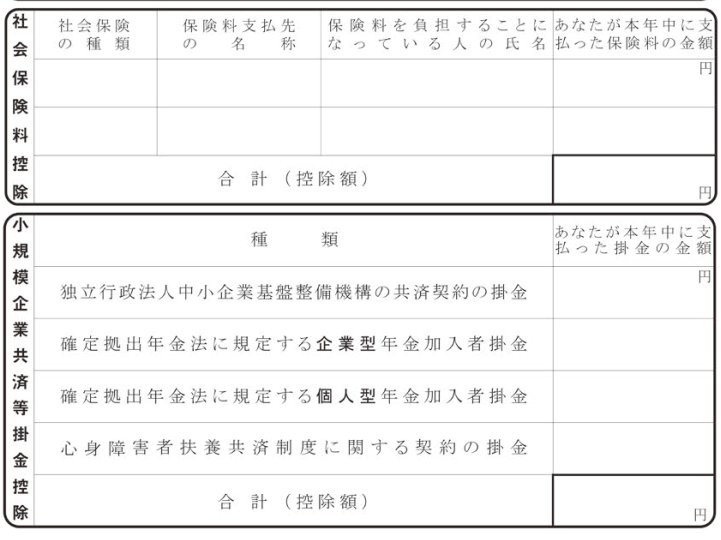 社会保険料控除と小規模企業共済等掛金控除の書き方