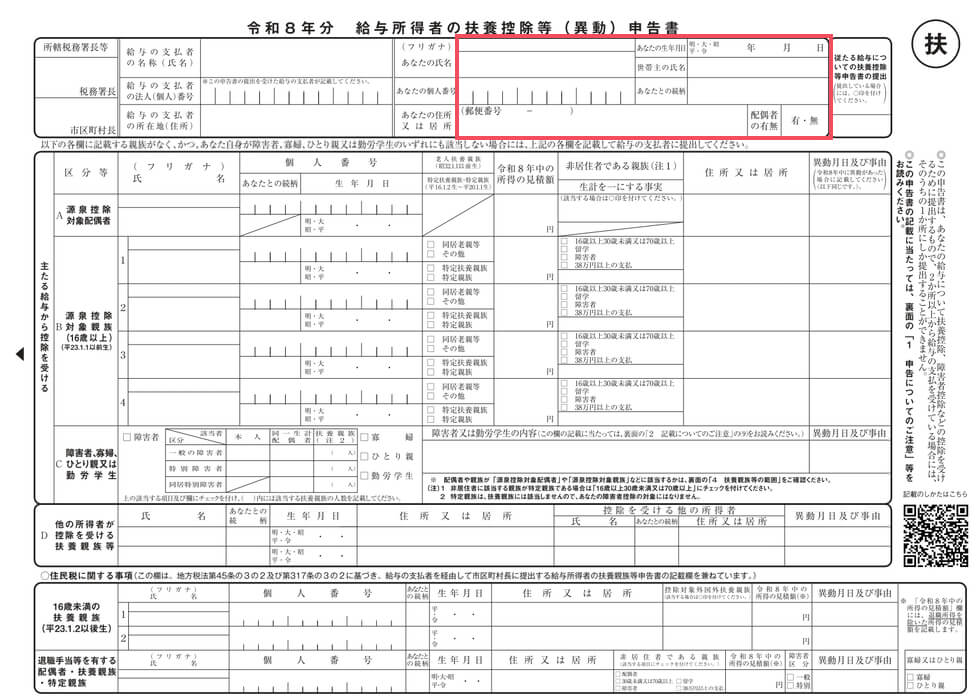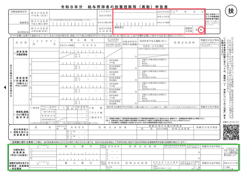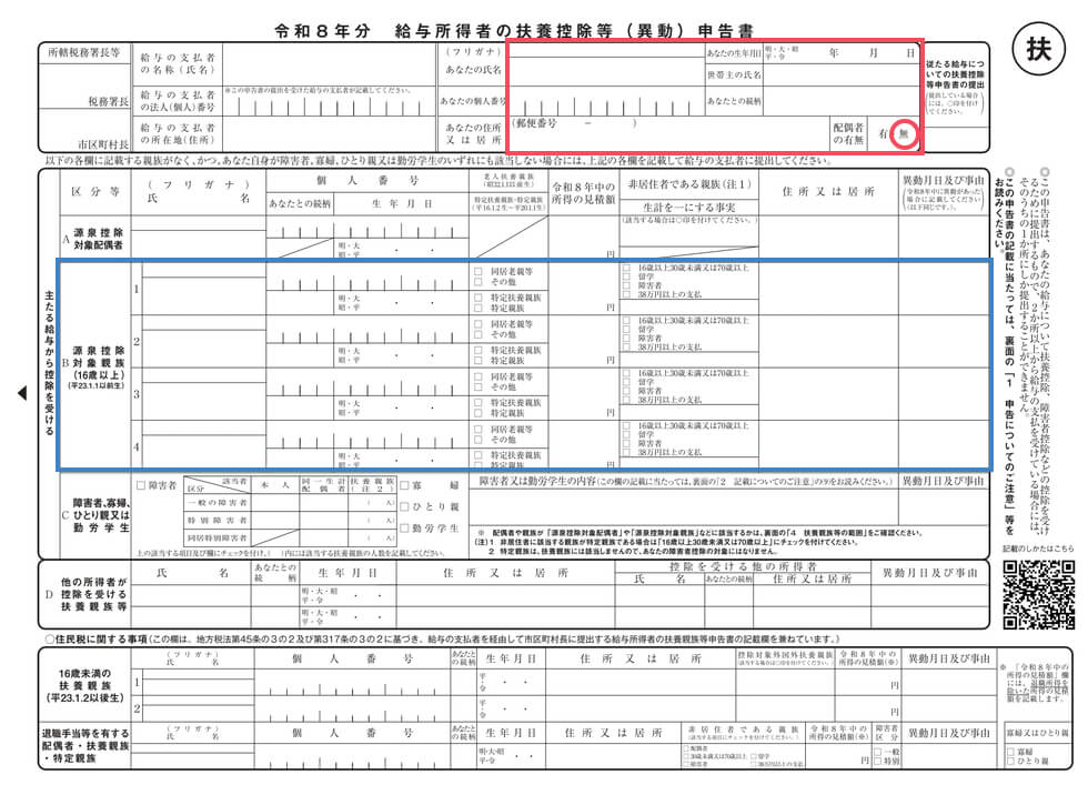 出典:A2-1 給与所得者の扶養控除等の(異動)申告|国税庁、「令和8年分給与所得者の扶養控除等(異動)申告書」を加工して作成