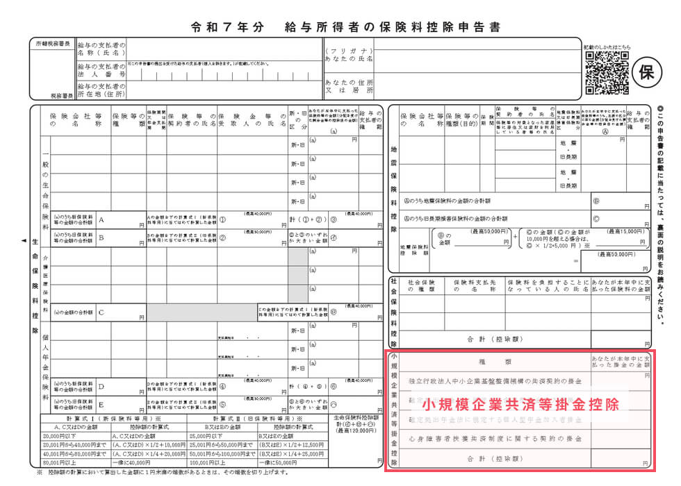 10月~11月頃に国民年金基金連合会から送付される「小規模企業共済等掛金払込証明書」を添付する必要があるので大切に保管しておきましょう。詳しくはこちらをご覧ください。