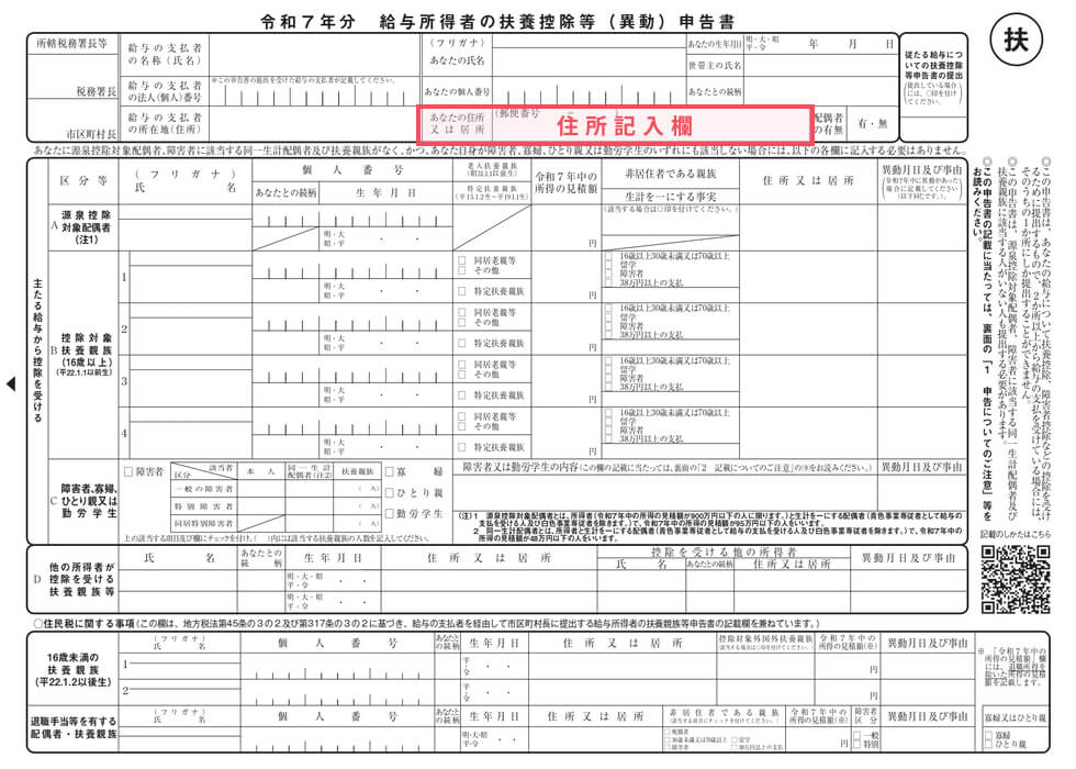 出典:令和7年分給与所得者の扶養控除等(異動)申告書|国税庁