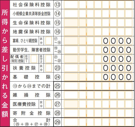自営業の人は、事業収入やその事業にかかった経費を差し引いた事業所得、社会保険料控除や生命保険料控除などの各種所得控除をすべて記載します。