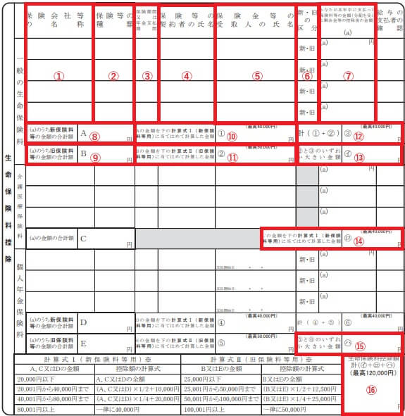生命保険料控除で記載が必要なのは、左側の生命保険料控除欄です。記載方法について一つずつ確認していきましょう。