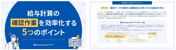 この資料では、給与計算の確認でよくあるお悩みと効率化のポイント、マネーフォワード クラウド給与を導入した場合の活用例をまとめました。