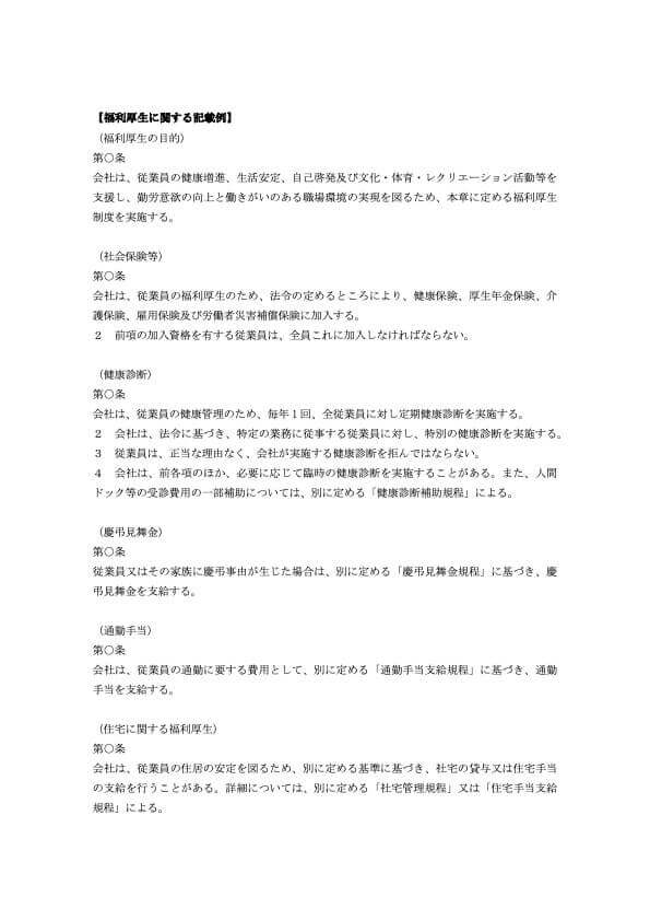 福利厚生 就業規則 記載例(一般的な就業規則付き)