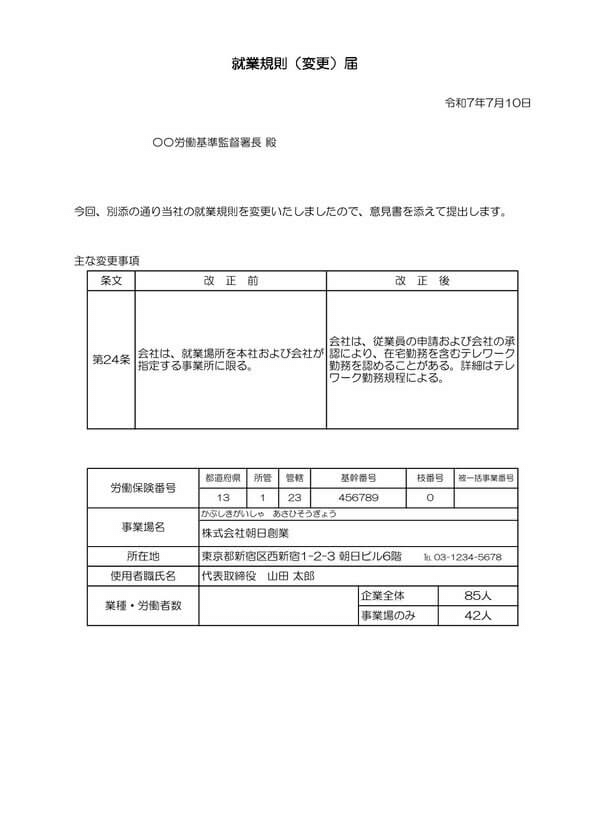 就業規則変更届 記入例