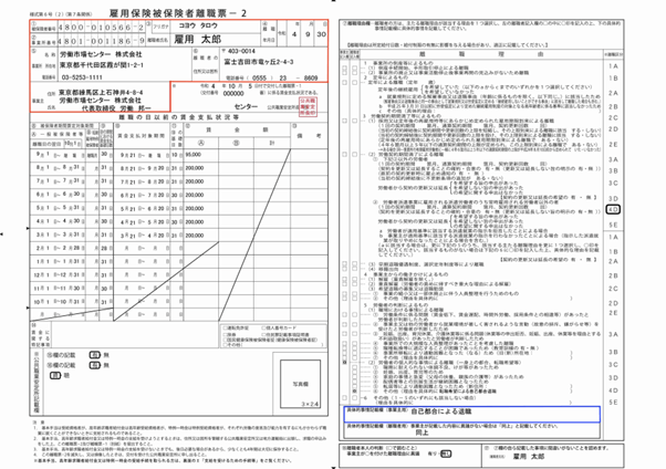 引用:記入例:雇用保険被保険者離職票−2(様式第6号)|ハローワークインターネットサービス