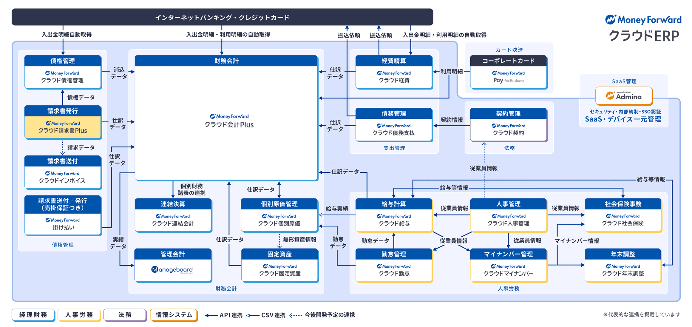 マネーフォワード クラウドの他サービスと請求書Plusの連携図です。