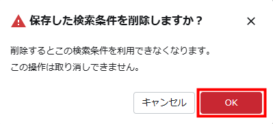 - 「保存した検索条件を削除しますか?」画面を確認し、問題がなければ「OK」をクリックします。