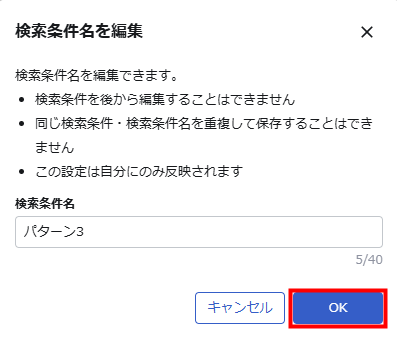 - 「検索条件名を編集」画面で検索条件名を編集し、問題がなければ「OK」をクリックします。
