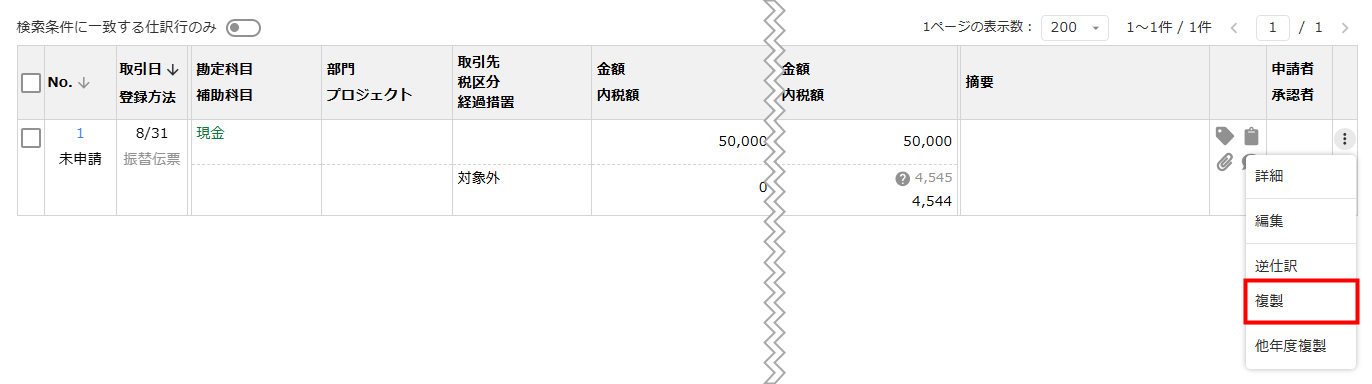 • 複数の仕訳を一括で複製することはできません。1件ずつ複製してください。