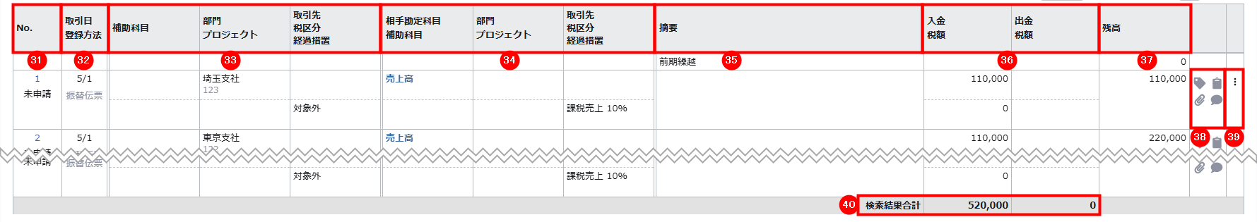 No. 仕訳の取引Noとステータスが表示されます。