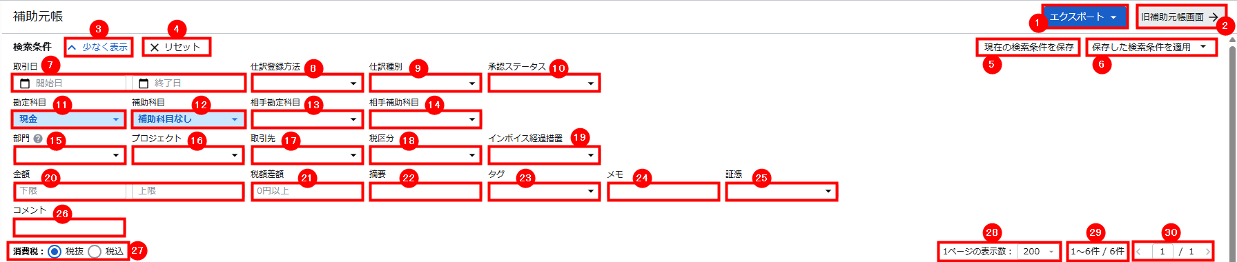 本項では、リニューアル後の「補助元帳」画面について説明します。