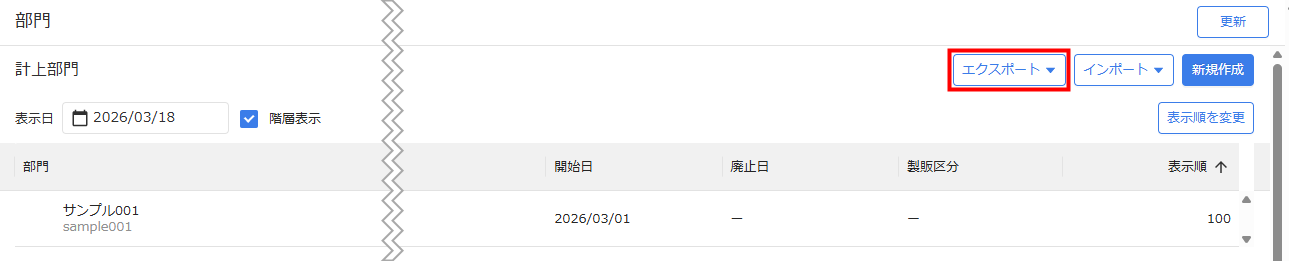 部門のエクスポート