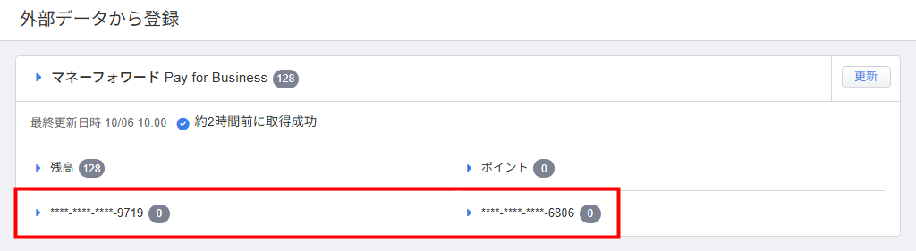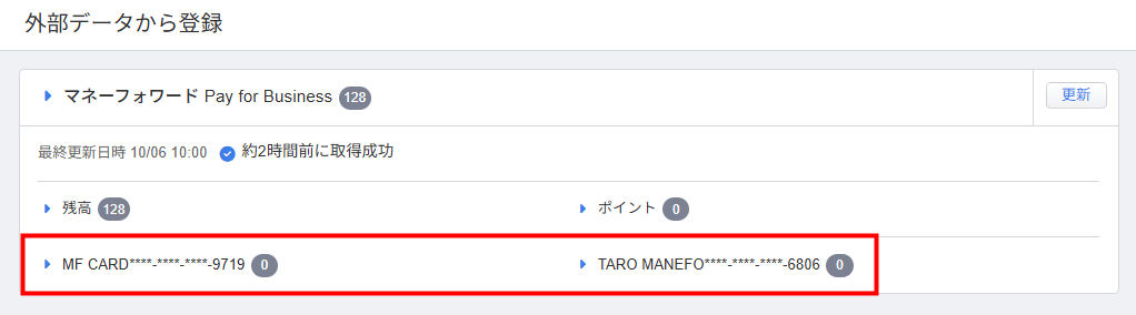 これまではサービス画面上に「マネーフォワード ビジネスカード + カード番号の下四桁」が表示されていました。