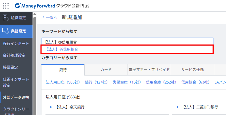 これにより、マネーフォワード クラウド会計Plusで「巻信用組合」の法人口座の入出金明細を取得できます。