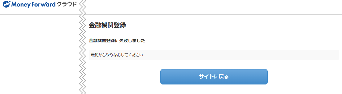 - 「金融機関登録に失敗しました」というエラー画面が表示される