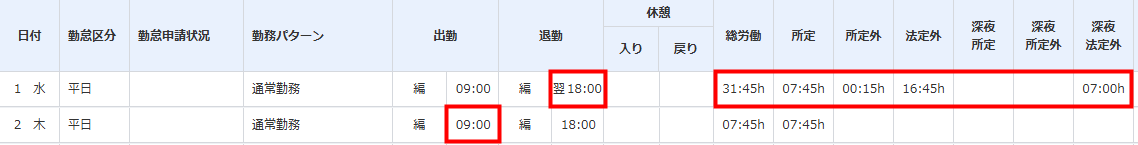 これまでは、前日または前々日の退勤打刻が当日の出勤打刻に時間の重なりがある場合でも、アラートが表示されず、意図しない労働時間が集計されてしまう可能性がありました。