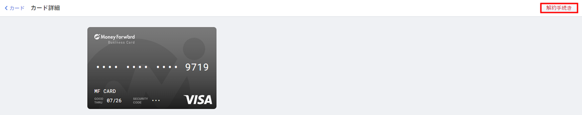 - 「カード詳細」画面で「解約手続き」をクリックします。