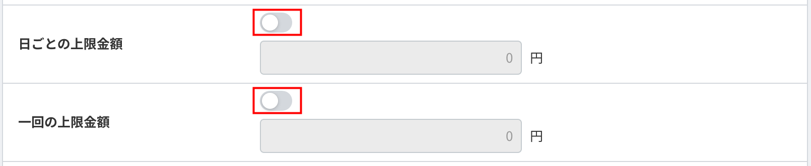 「日ごとの上限金額」と「一回の上限金額」は、各スイッチを有効にしてから金額を入力してください。