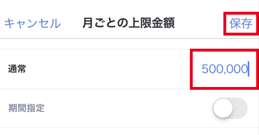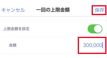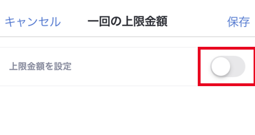 - 「上限金額を設定」のスイッチを有効にして金額を入力し、「保存」をタップします。