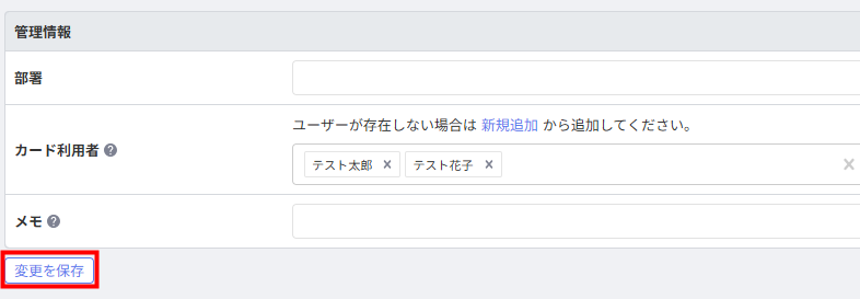 変更時は、「マネーフォワード Pay for Business」と「マネーフォワード クラウド経費」それぞれでカード利用者を変更してください。