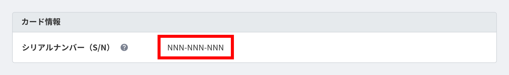 - 「カード詳細」画面の「カード情報」で「シリアルナンバー(S/N)」を確認します。